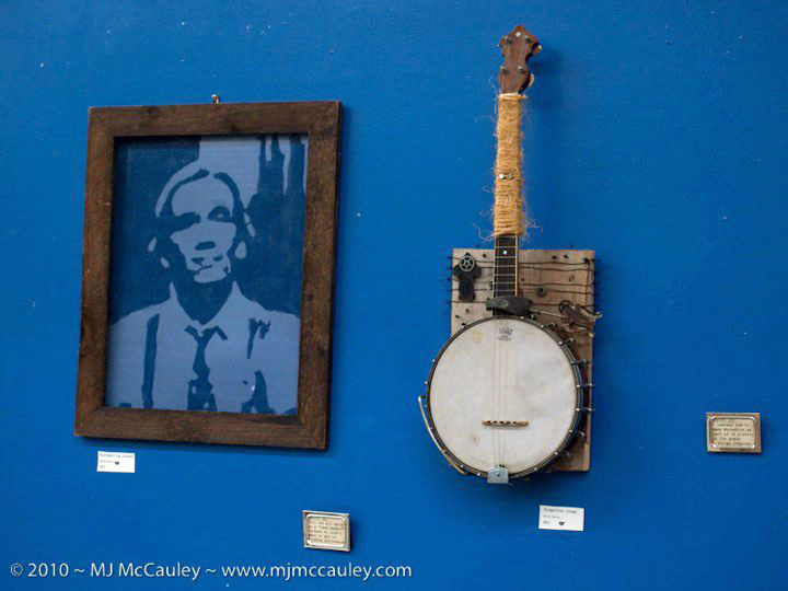Left:Portrait of G.E. painted on window screen. Right: Sculptural assemblage entitled “Forgotten Songs”. Both by Ainslie Heilich 2010.